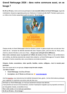 🗓️ Cette année, le Grand Nettoyage se déroulera du 26 au 29 mars 2026.