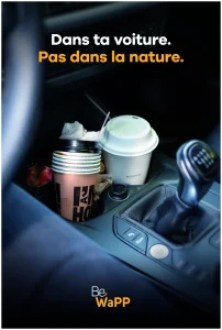 Certains fast-food et stations-service s’associent à Be WaPP pour vous rappeler un geste simple : vos déchets restent dans la voiture.